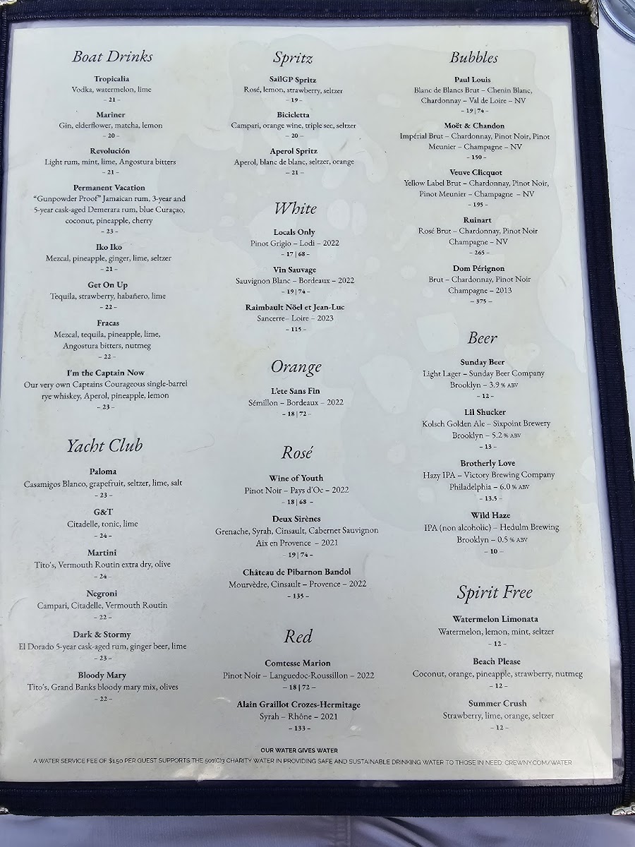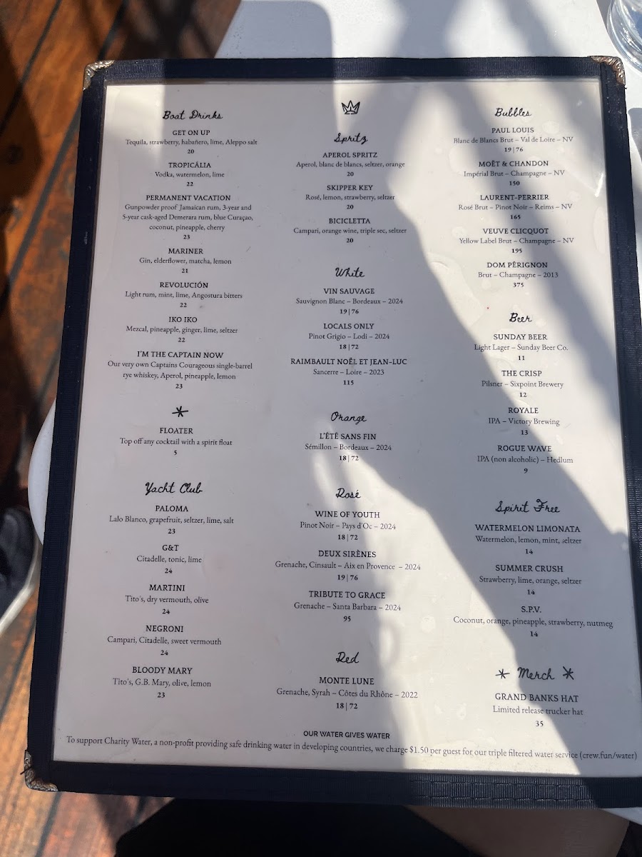 As you step aboard, the gentle sway of the boat welcomes you into a vibrant dining atmosphere where fresh seafood takes center stage. The menu is a celebration of quality, highlighting some of the finest oysters sourced from around the coast. Indulge in the Southampton oysters—the perfect embodiment of the briny sea—while sipping on a refreshing Il Marino Pinot Grigio, an excellent choice for those looking to enhance their seafood experience. For those seeking something different, the Everwild Pinot Noir rosé is a delightful companion, bridging flavors with its light berry notes.